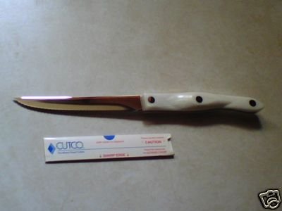 Cutco Trimmer pearl handles. One of the most popular items made by Cutco Cutlery. Full Tang, Triple Rivet Construction --- High Quality Nickel-Silver Alloy Rivets. Highly engineered thermo-resin ergonomic handles will not crack, chip, fade or absorb material CUTCO Forever Guarantee --- Free sharpening and replacement forever! America's #1 brand in quality cutlery for over 50 years Manufactured ent
